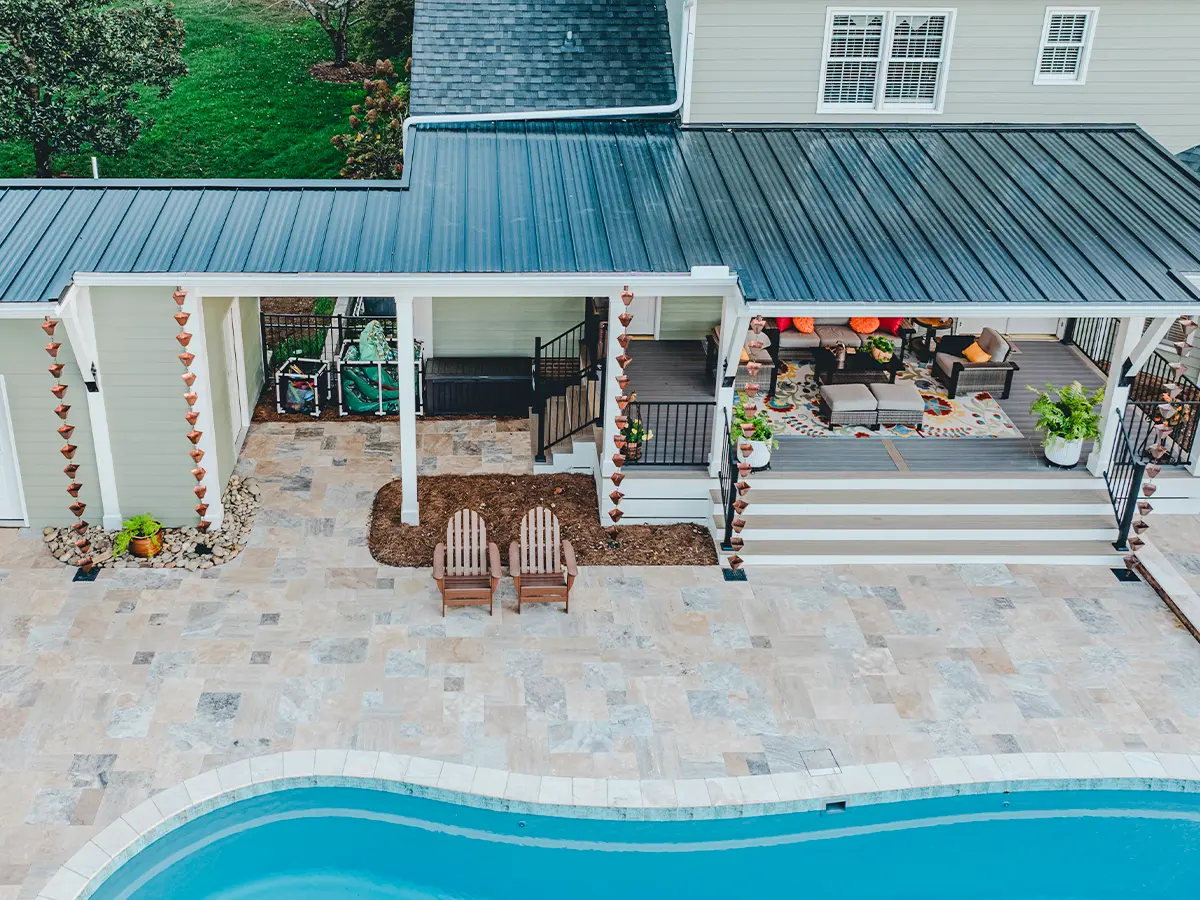 We decided to add a pool to our back yard. But as we thought more about it, we also decided to build a pool house for a bathroom and pump room, update and add a roof to our deck and extend it to connect with the pool house. By doing this, we created an outdoor space that helps us enjoy our backyard more fully.